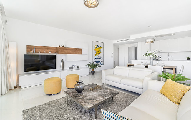 - A spacious living room seamlessly connected to the dining area and open-plan kitchen.