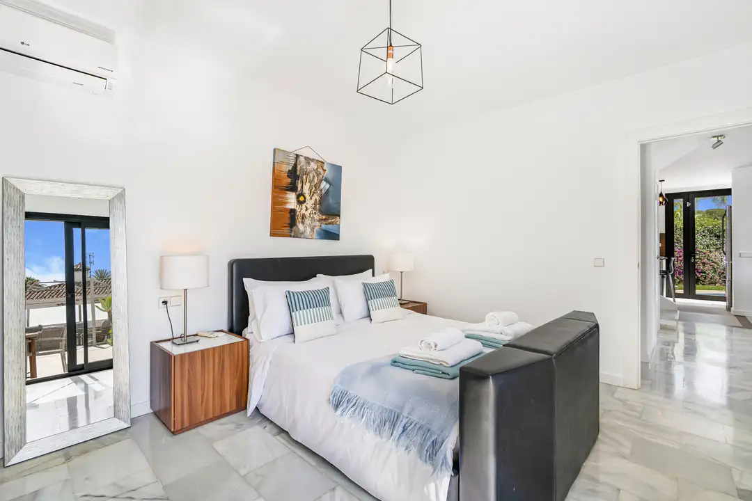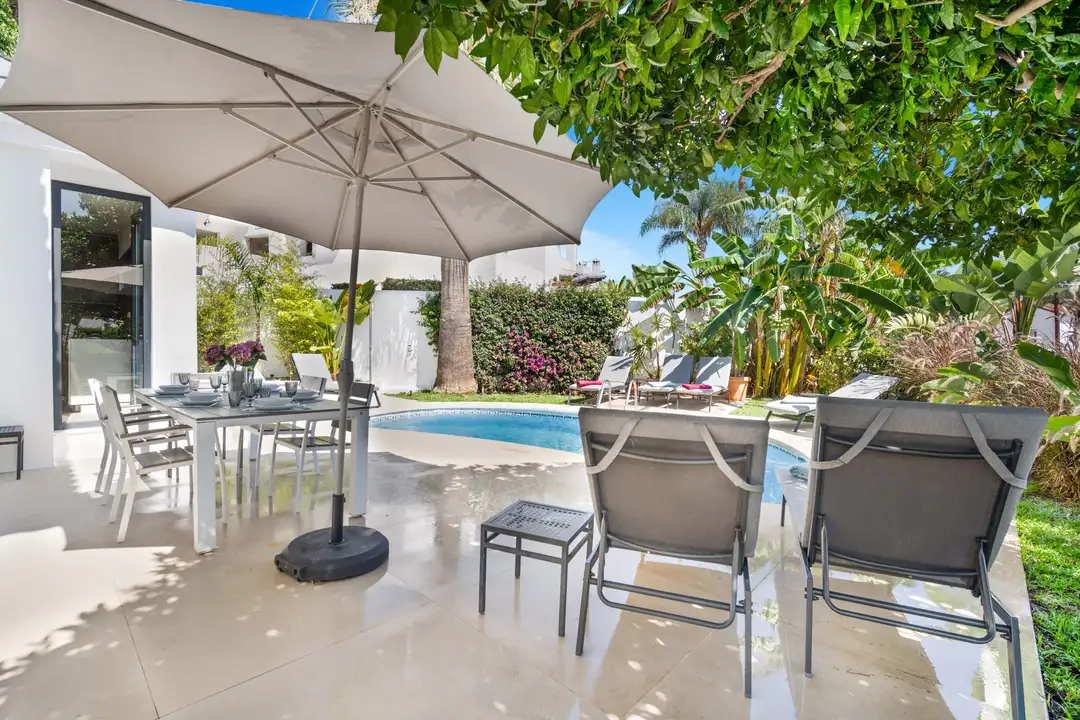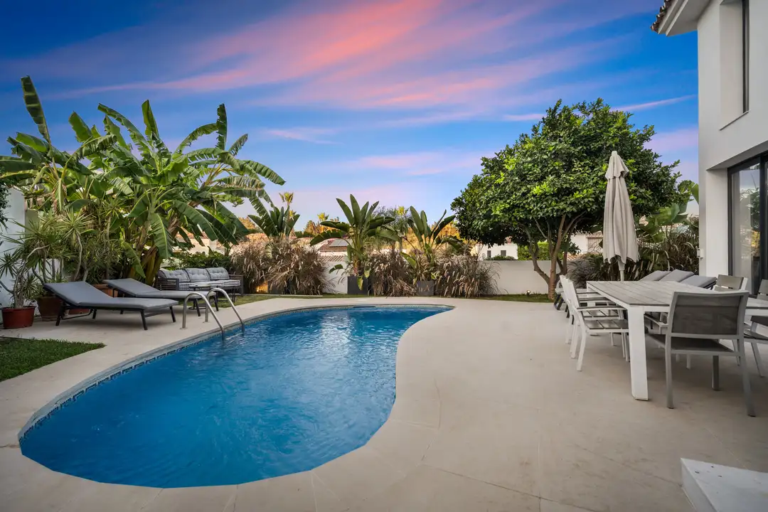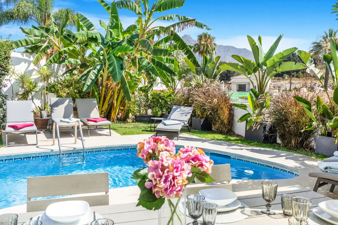 Welcome to Villa Bonita, your personal paradise tucked away in the lively heart of Marbella! Picture stunning tropical gardens featuring majestic Mediterranean palm trees, delightful sunbathing spots, and your very own heated swimming pool. Nestled in the exclusive Nueva Andalucía area, just a quick stroll from the buzz of Puerto Banús, Villa Bonita puts you steps away from an incredible array of top-notch restaurants, hotspots, supermarkets, and other conveniences.