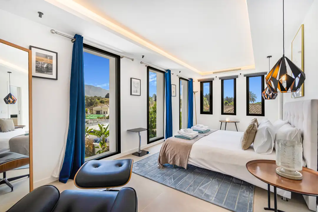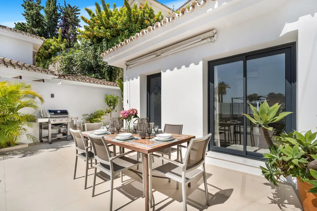 Step out onto the villa’s terrace, where you’ll find comfy sun loungers, inviting dining spots, and a fully equipped barbecue kitchenette. This space is designed for year-round enjoyment in Marbella’s lovely warm climate. The heated pool, a true gem of the villa, guarantees a splash of fun any time of year—perfect for those winter getaways under the sun!