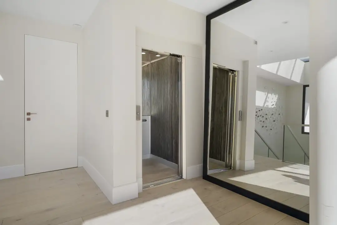 As you enter at the top of the villa trough an electric gate, there’s outdoor parking for at least 6 cars and 2 indoor parking spaces. The massive wooden entrance door brings you inside the villa where you can find 1 bedroom en-suite and the entrance to the garage. A private lift brings you to all floors of the house. You can also take the wooden stairs and absorb the beaty of the house as you descend the stairs.