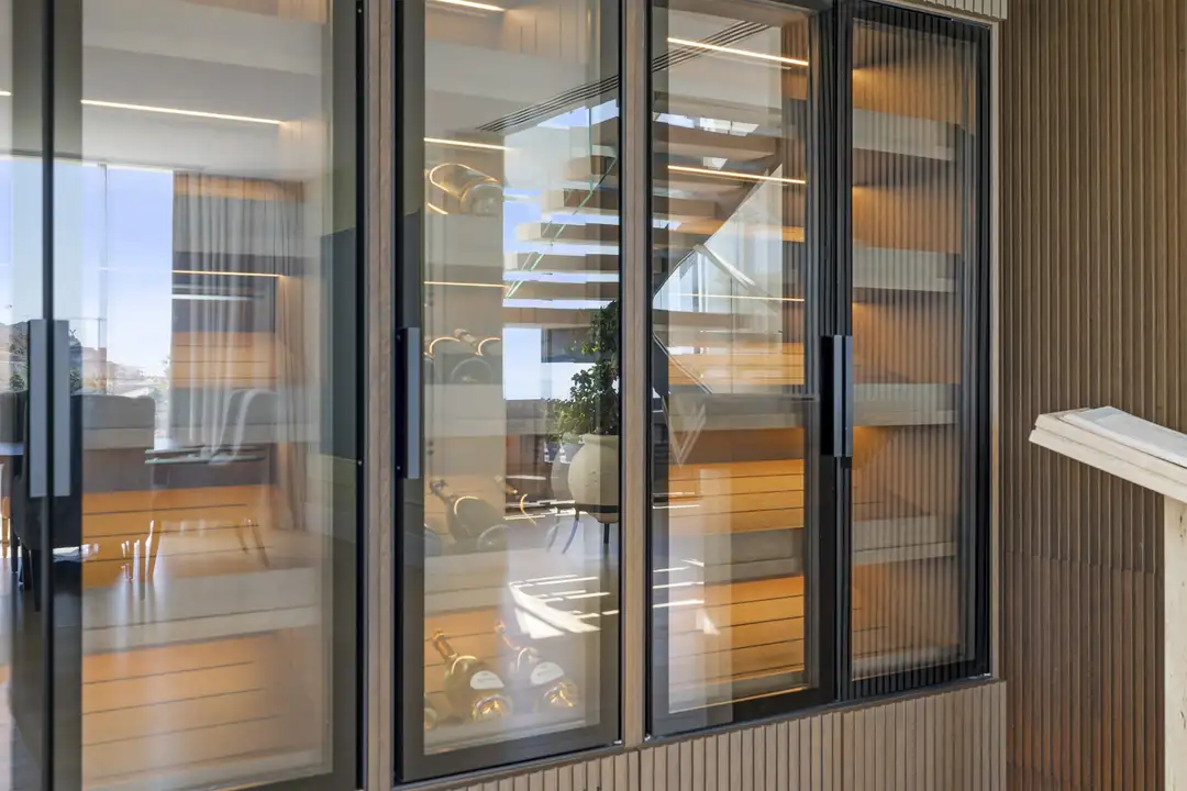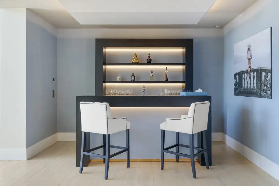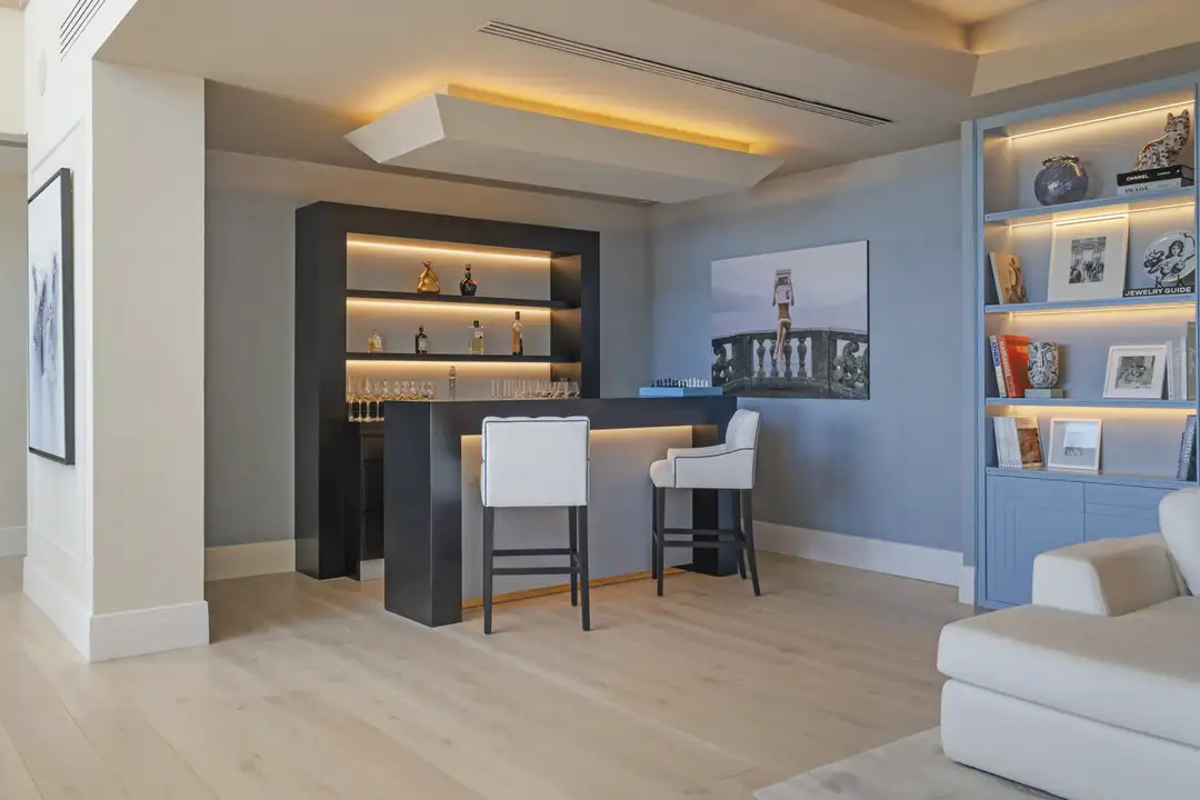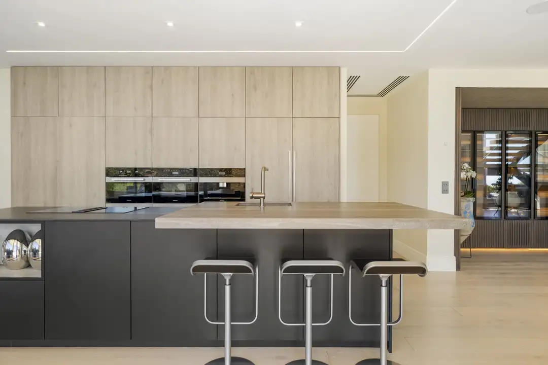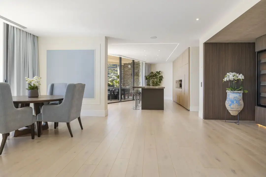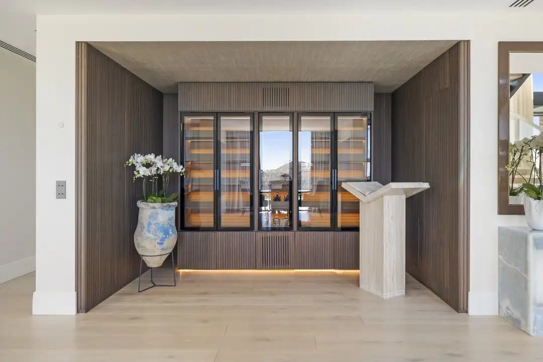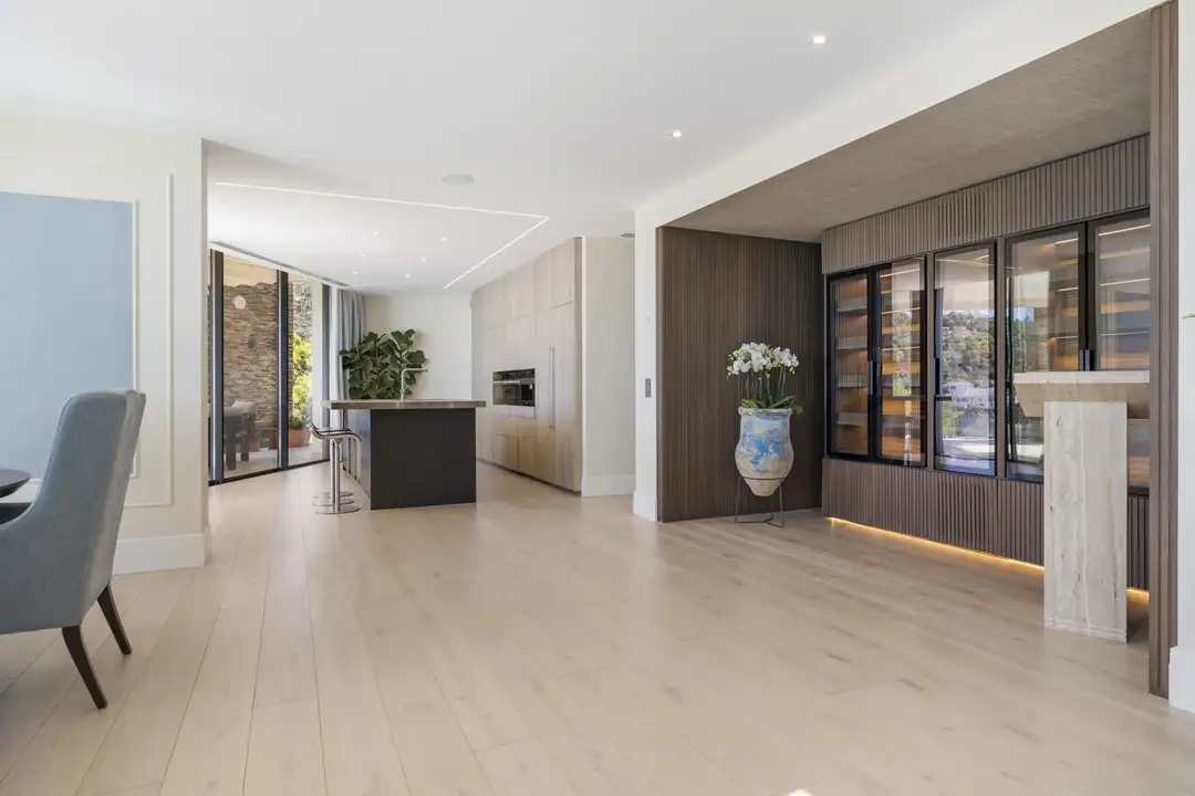 An open plan kitchen with dining area inside and on the terrace completes this level together with luxury integrates wine & champaign wine coolers.