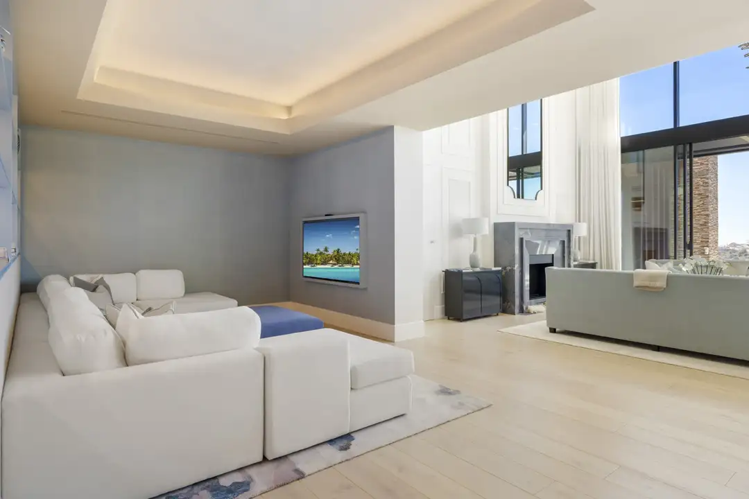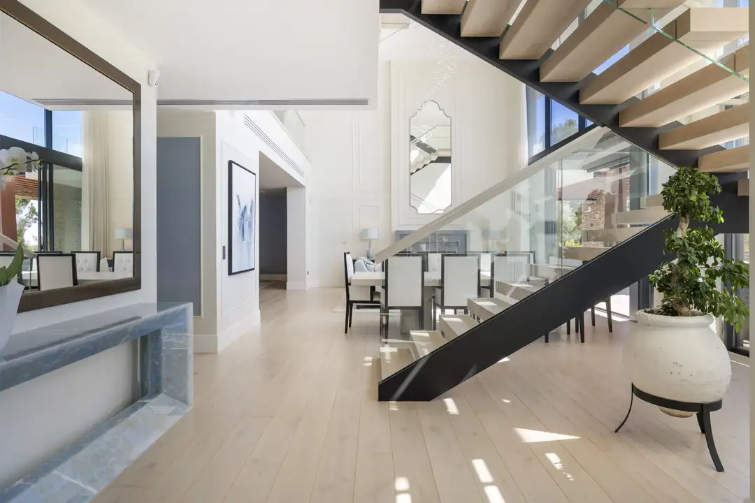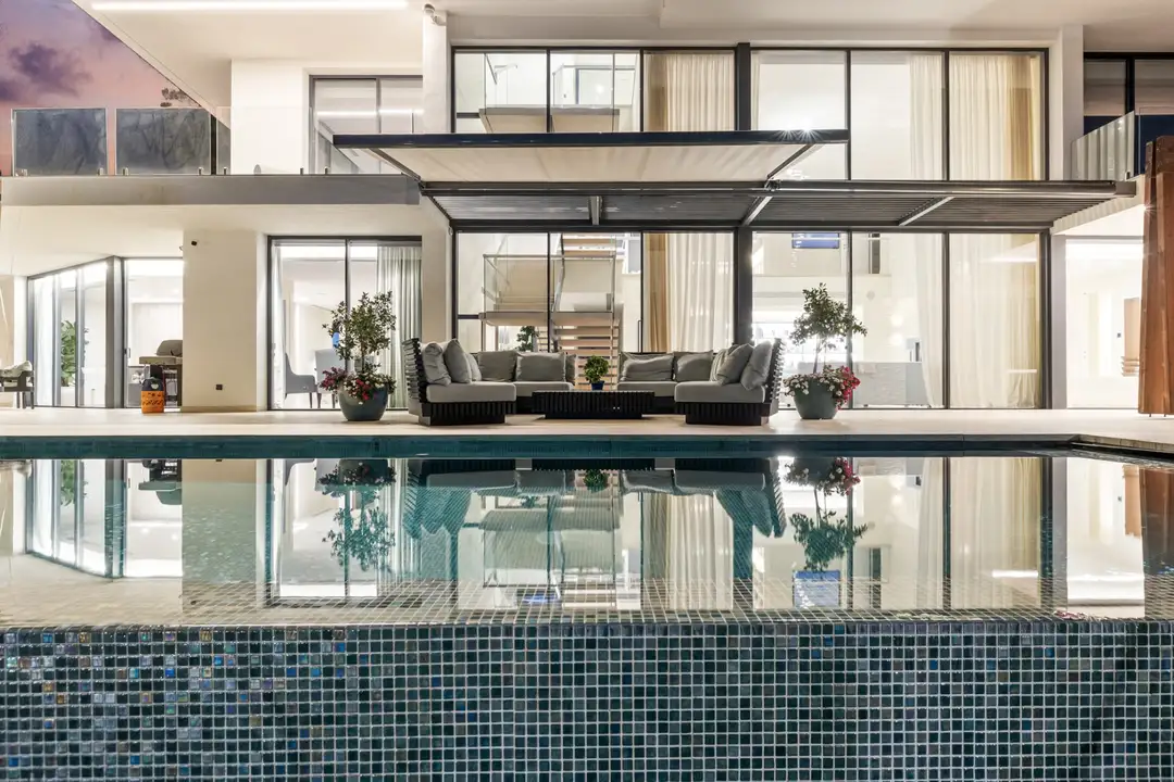 In addition to its impressive architecture and interiors, the villa is equipped with luxury facilities including with heated outdoor pool and a fully equipped gym.