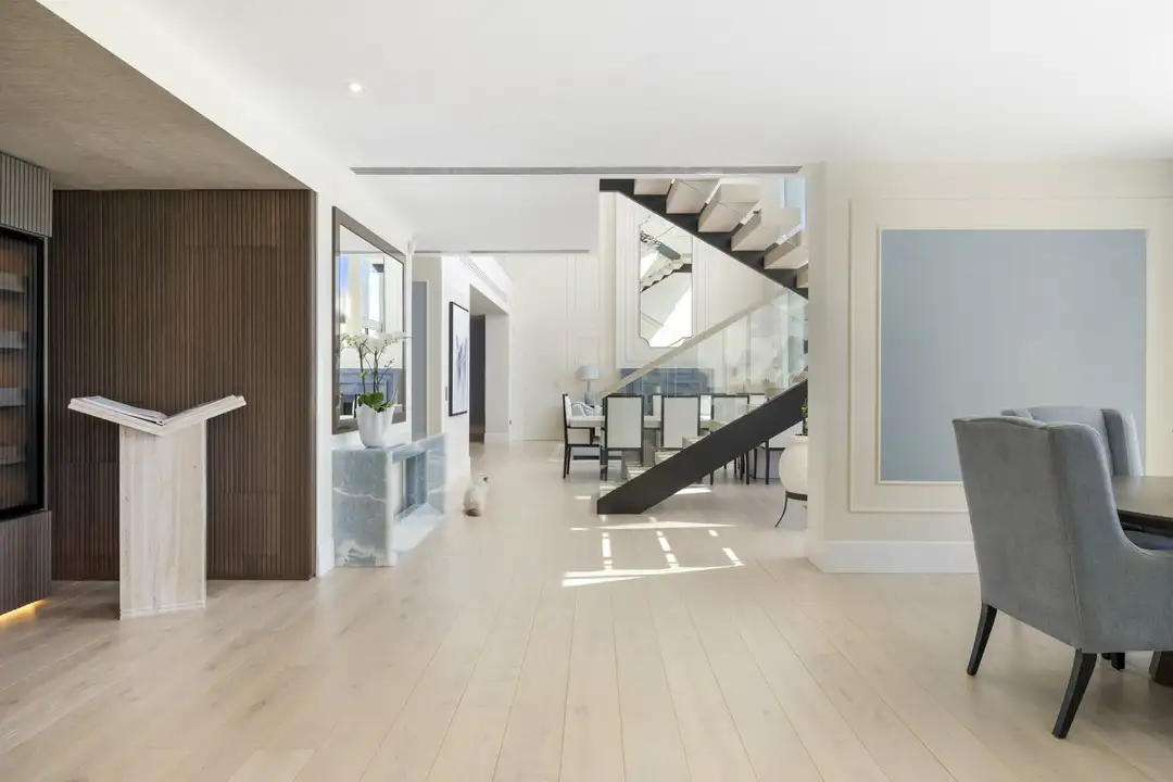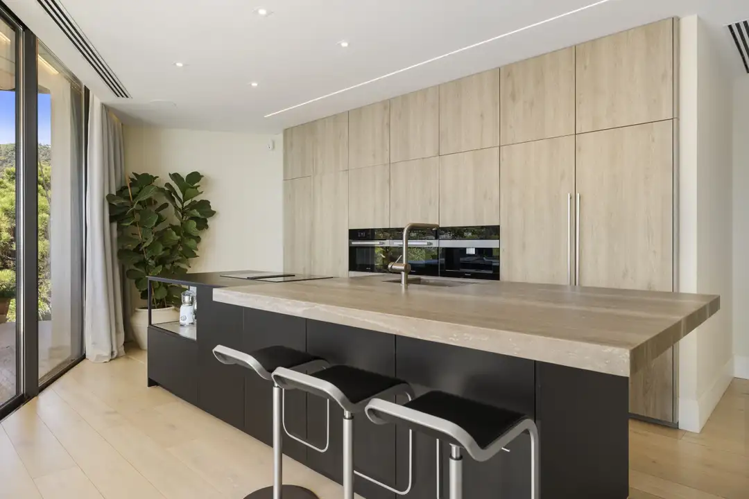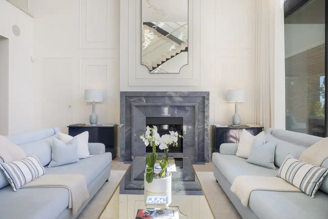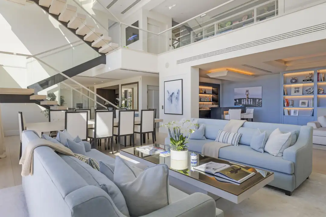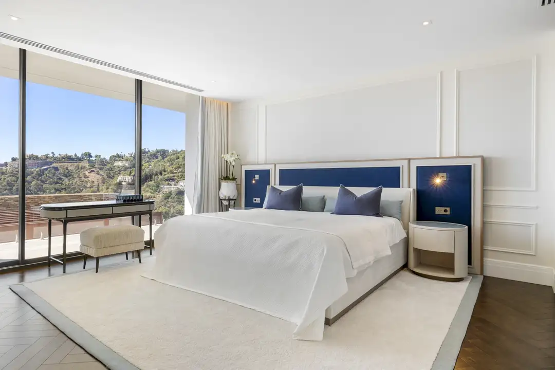 The modern open plan kitchen and luxury finishes reflect sophistication and practicality. The five bedrooms, each with a unique design, feature a master suite that includes a dressing room, spa-style bathroom and private terrace with stunning views.