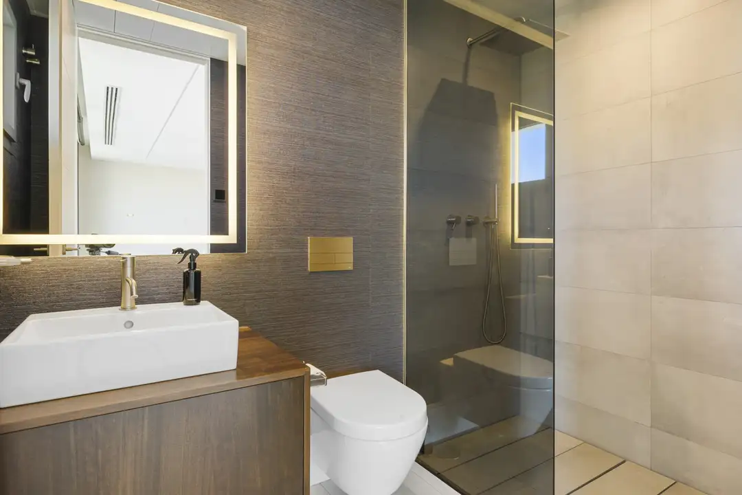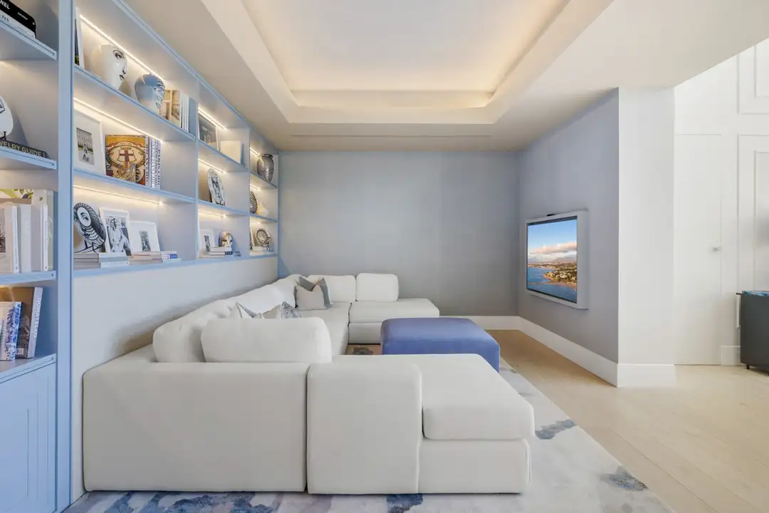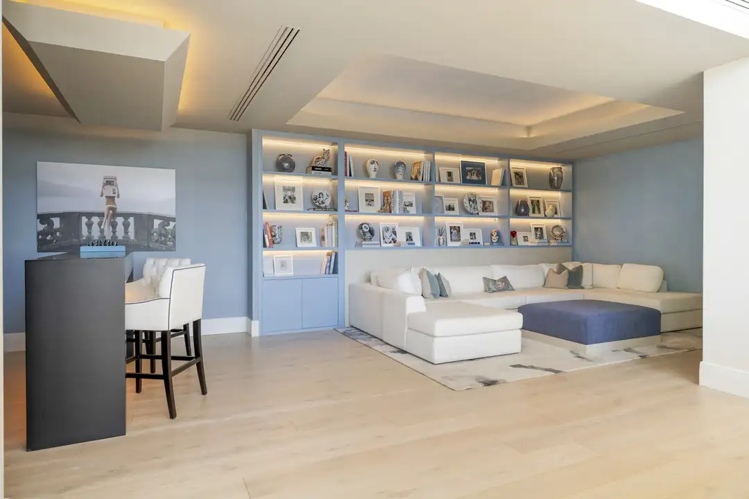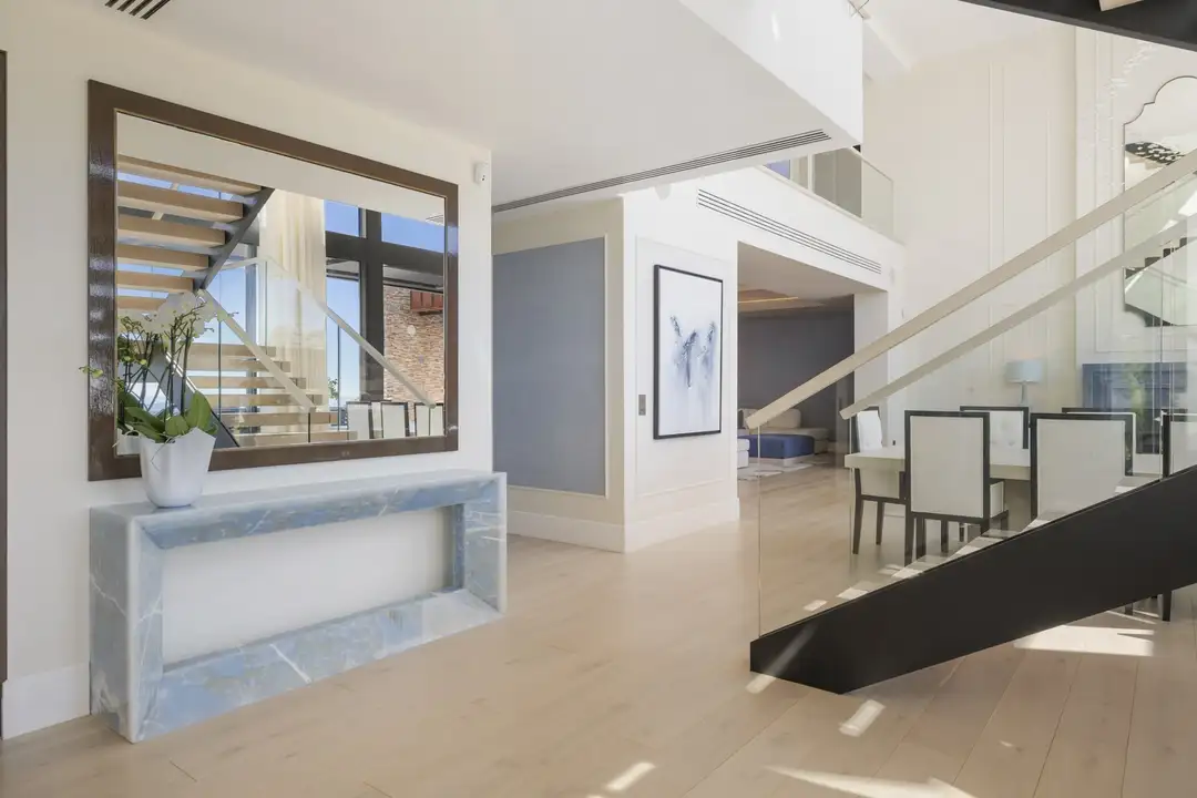 The interiors, fully furnished in a contemporary design, connect to spacious outdoor terraces ideal for leisure and relaxation. Notable features include high end appliances, electric blinds, an advanced alarm system and automatic irrigation. Oversized windows, high ceilings and an open-plan design contribute to a spacious ambience, while sliding glass doors harmoniously unite the interiors with the external environment. The spacious terraces include seating areas and spaces for alfresco dining, ideal for entertaining guests or for enjoying with the family.