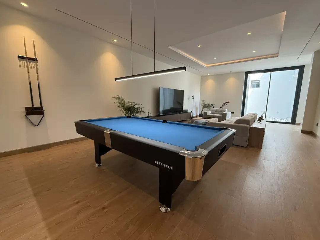 - A stylish games room with a pool table, lounge seating, and ambient lighting ā ideal for evenings of entertainment with family or friends.