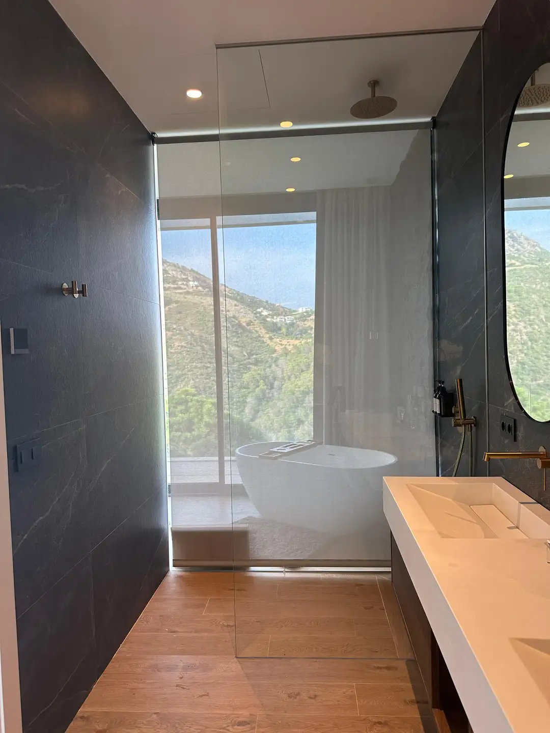 - A stunning infinity pool with panoramic sea and mountain views ā the perfect backdrop for sunbathing, swimming, or sunset cocktails.
