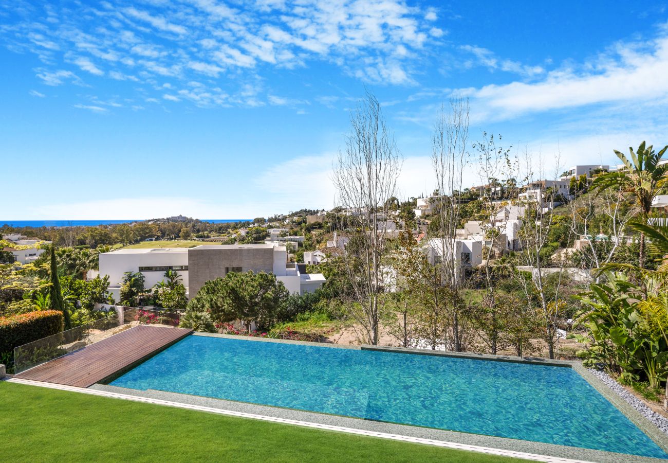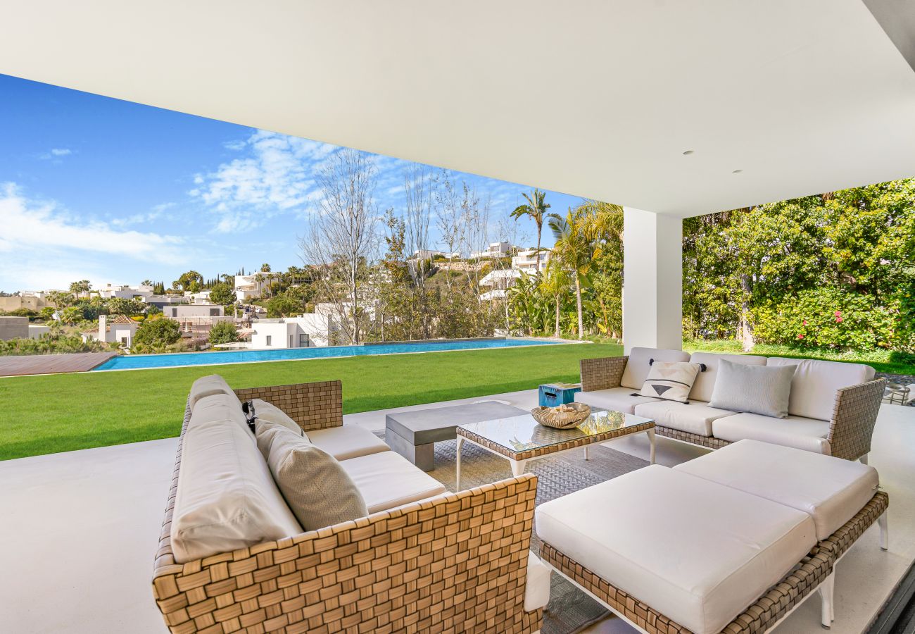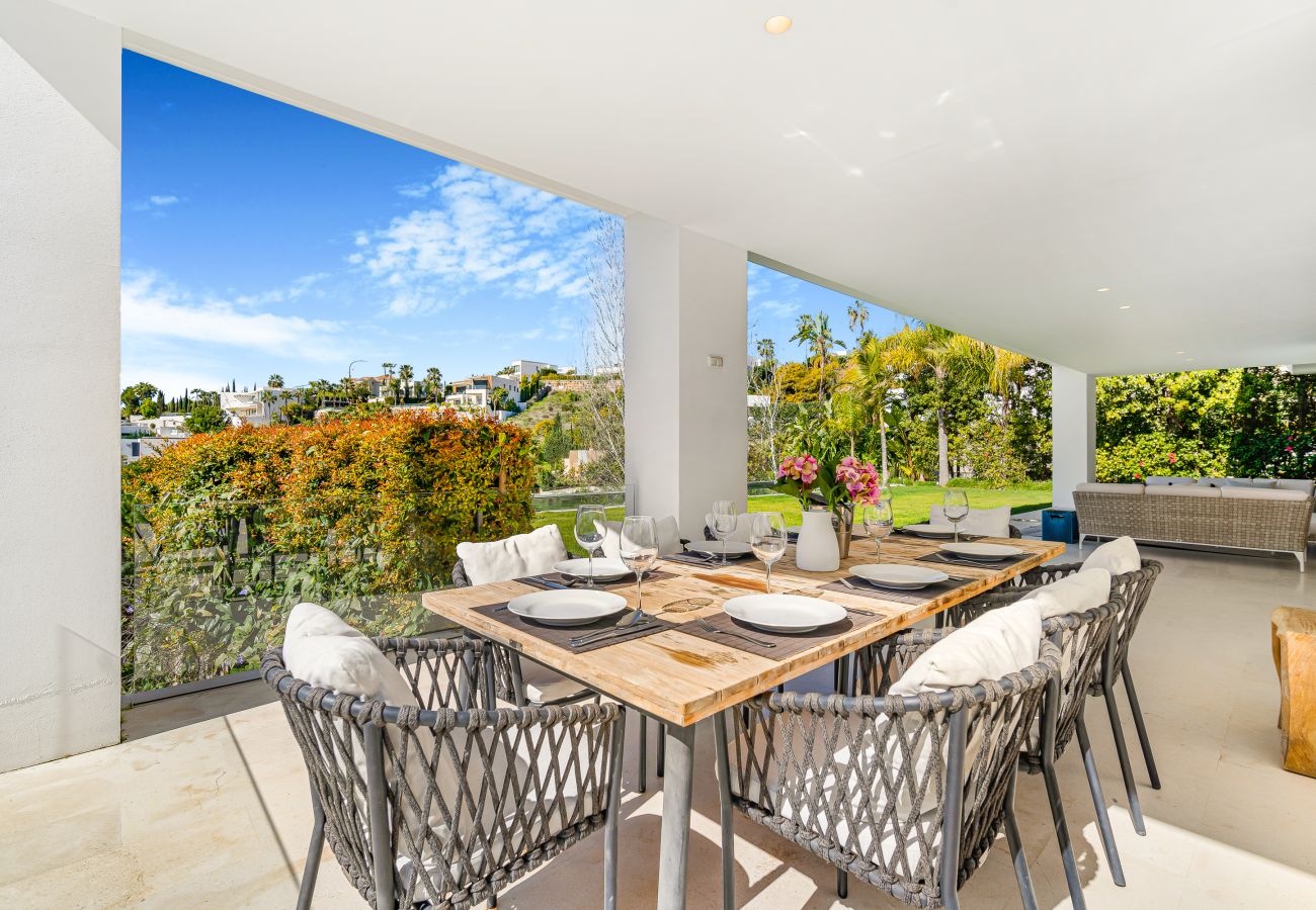 This outstanding five-bedroom villa is set in the serene and exclusive neighbourhood of La Alquería, just minutes from the picturesque village of Benahavís and within easy reach of Marbella and Puerto Banús. Enjoying a privileged southwest orientation, the property captures breathtaking views stretching from the valley below to the Mediterranean Sea.