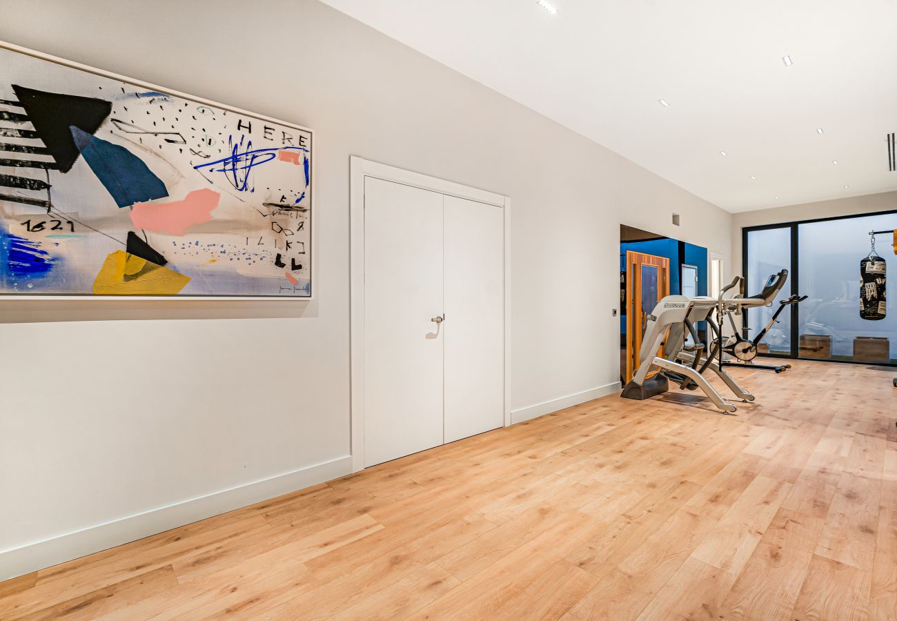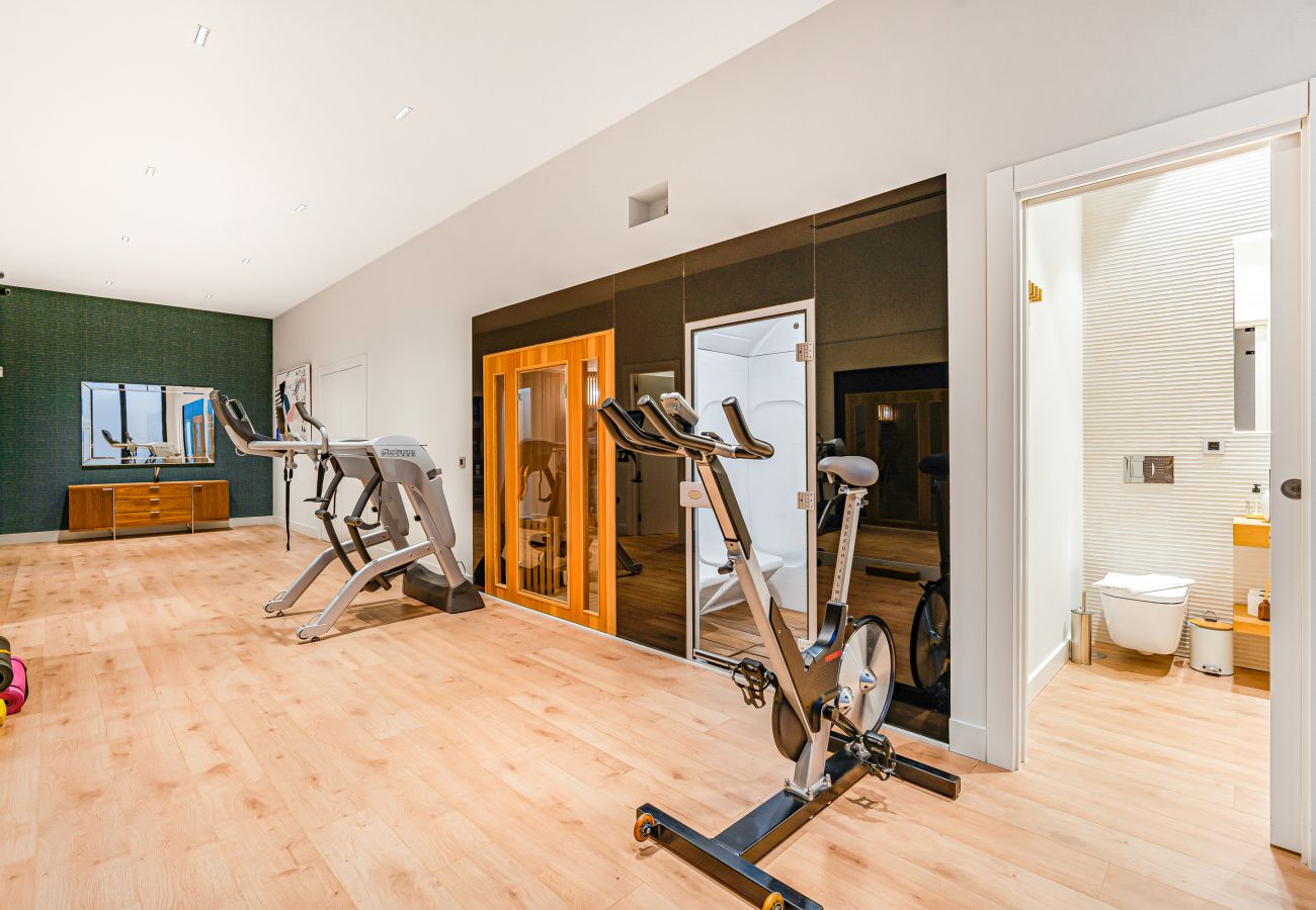 On the lower level, guests will find a fourth guest bedroom with its own bathroom, a fully equipped gym, and a generous games or children’s playroom. This space is ideal for relaxation and entertainment and comes complete with table tennis and a darts board, providing fun for guests of all ages.